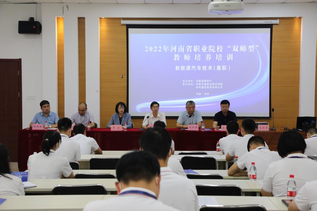 7月2日上午,2022年新能源汽车技术全省职业院校“双师型”教师培训开班仪式在我校航海路校区举行。校党委书记曹焱、省教育厅职成教处处长秦剑臣、校工会主席朱学军出席开班仪式,校党政办公室、教育培训中心、汽车学院等相关负责人及来自各职业院校近40名专业教师参加仪式。仪式由朱学军主持。