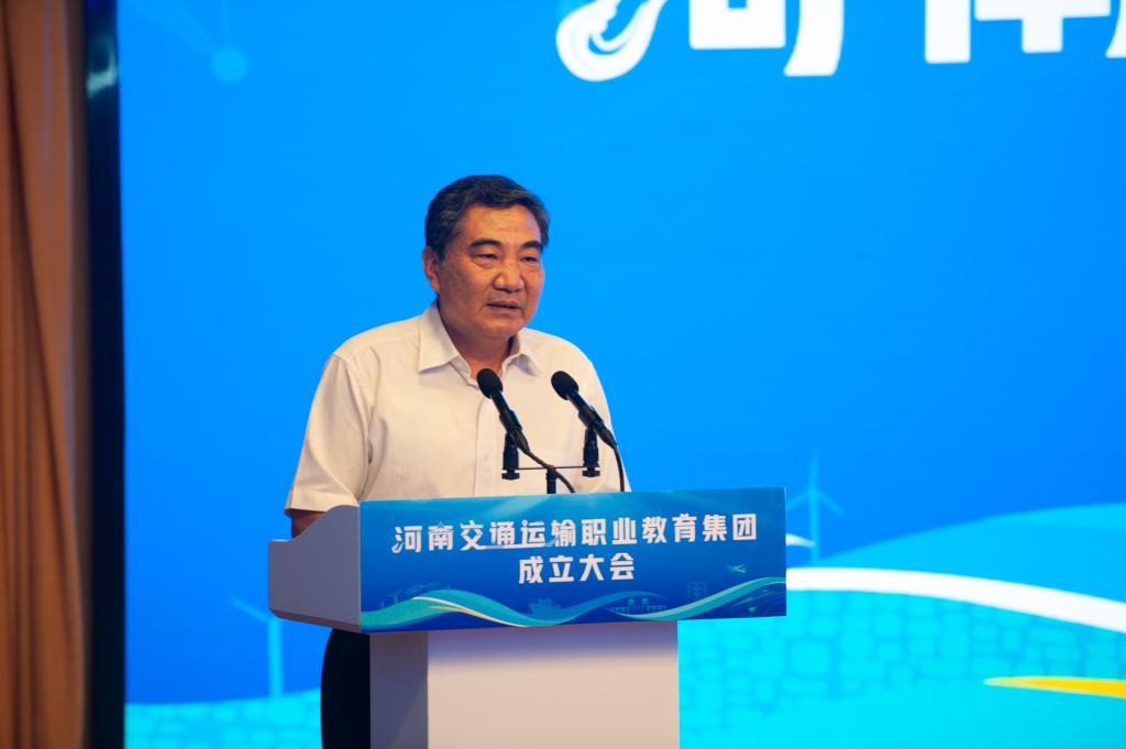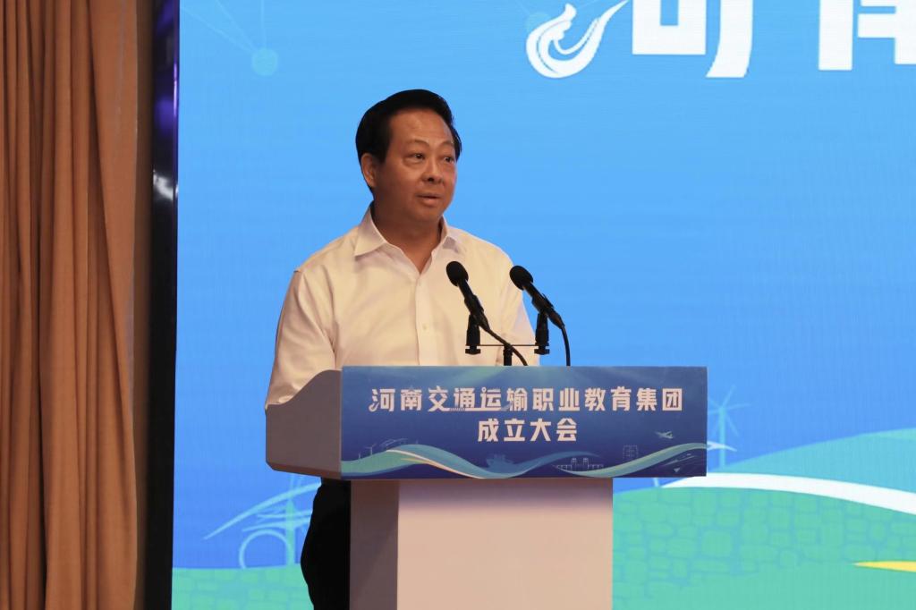 陈垠亭代表河南省教育厅讲话。他指出,我省高度重视职业教育集团化办学,集团规模在全国处于前列,在此基础上组建20个省级骨干职教集团,是进一步深化职业教育集团化办学改革、服务产业转型升级,促进教育链、人才链与产业链、创新链有效衔接的重要举措。整合重组的河南交通运输职教集团,是我省交通运输行业深化产教融合校企合作的重要实践和探索,对加速培养交通运输类复合型技术人才、加快推进我省交通运输体系建设具有重要意义。他对集团发展提出四点希望:一要明确发展定位,找准各方利益结合点,积极探索混合所有制办学模式,加速教育链和产业链的高度融合,不断优化职业教育供给,为其他职教集团实体化运作作出示范和表率;二要充分发挥集团的平台作用和成员的优势,着力深化人才培养模式改革,促进成员单位资源共享、优势互补,构建校企命运共同体;三要充分发挥集团的资源集约优势,切实把工作重心放在提质培优、增值赋能上,在内涵建设上下功夫,在特色化发展上多凝练,在品牌打造上出亮点,着力打造河南职教产教融合发展品牌;四要切实找准定位、理清思路,科学谋划,提升合作层次和质量,携手打造政、校、企、行“命运共同体”,实现健康、持续、高质量发展,为推进社会主义现代化河南建设提供强有力的技术技能人才支撑。