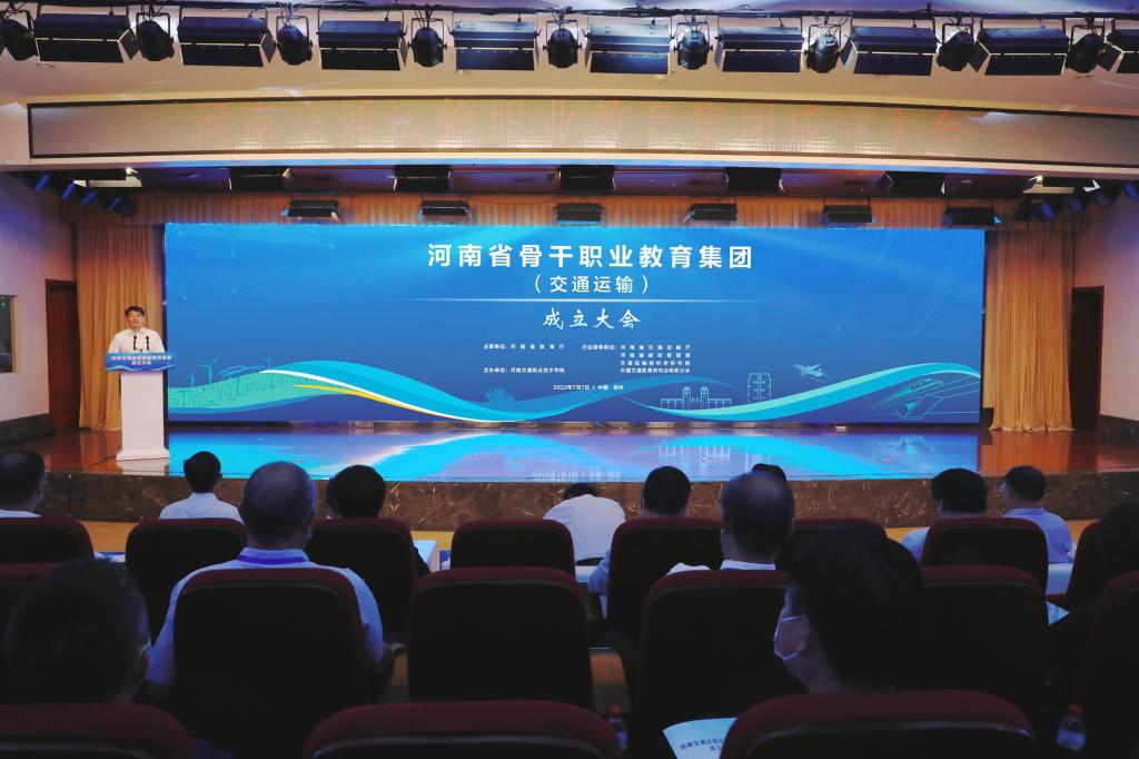 7月7日上午,河南省骨干职业教育集团——河南交通运输职业教育集团成立大会在河南交通职业技术学院(以下简称“河南交院”)成功举办。河南省教育厅党组成员、副厅长陈垠亭,河南省交通运输厅党组成员、副厅长唐彦民出席大会并讲话。交通运输部科学研究院院长石宝林在线上出席大会。河南省公路学会理事长朱理平,河南交通投资集团有限公司副总经理关健,河南省教育厅职业教育与成人教育处处长秦剑臣,河南省交通运输厅人事教育处处长鲁云杰,郑州铁路职业技术学院院长马玉霞,河南建筑职业技术学院院长张新州,河南省机场集团有限公司培训中心主任杨莉,省邮政管理局党组成员、普遍服务处处长贾琳娜等出席大会。河南交院党委书记曹焱出席大会并代表理事长单位致辞,校长刘志伟主持会议。来自省内外69家职业院校、行业组织、龙头企业代表和河南交院领导班子成员等150余人参加大会。