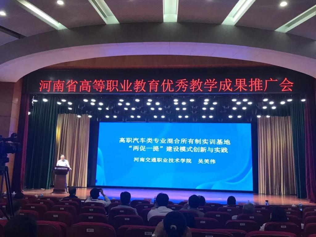 据悉,全省仅有16所高职院校的21项优秀教学成果在大会上进行推广交流。我校作为受邀院校之一,参加推广交流。会上,我校吴笑伟教授以《高职汽车类专业混合所有制实训基地“两促一提”建设模式创新与实践》为题,从成果的起源、背景、解决的主要问题和解决方案、创新点和应用推广效果5个方面,对我校混合所有制实训基地建设成果进行分享交流。教学成果理念领先、应用效果好,为全省混合所有制实训基地建设提供了“河交”方案,得到大会同仁的一致肯定和广泛好评。
