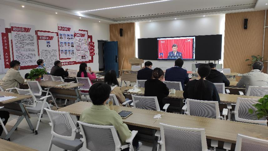 通过观看视频直播,校党委副书记、校长刘志伟表示,习近平总书记在中国共产党第二十次全国代表大会上的报告,全面总结了过去五年我国改革发展取得的巨大成就和新时代十年发生的伟大变革,描绘了全面建设社会主义现代化强国、以中国式现代化推进中华民族伟大复兴的宏伟蓝图,吹响了向第二个百年奋斗目标进军的嘹亮号角。成就让人自豪、变革让人鼓舞、号角催人奋进。接下来,我们要组织全校师生认真学习贯彻党的二十大精神,自觉对标全面建成社会主义现代化强国的战略目标,始终牢记为党育人为国育才的光荣使命,不断增强服务河南经济社会和交通运输行业发展的能力,为建设教育强国、推动职业教育高质量发展作出新的更大贡献。