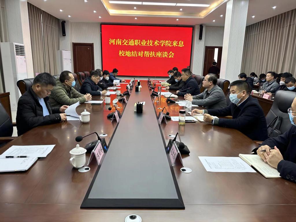 12月10日至11日,党委书记刘志伟带队到信阳息县开展校地结对帮扶工作调研并召开座谈会。息县县长管保臣,县委常委、宣传部部长贡少辉,副县长曹永甲陪同调研。
