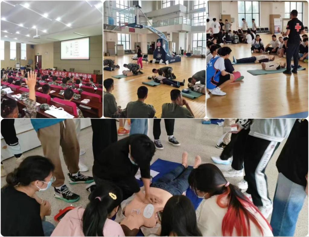 培训中,省红十字会的讲师详细介绍了红十字会的历史起源、发展历程和承担的使命职能等基本常识,教授了心肺复苏、自动体外除颤器使用、气道异物梗阻、常见急症救护等理论知识,并现场指导师生开展胸外按压、AED机器的使用和常见创伤包扎实训。