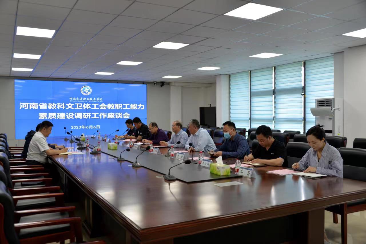 6月6日下午,省教科文卫体工会主席张学勇、副主席白锟一行来我校进行教职工能力素质建设工作调研指导。学校党委副书记孙建立、校工会主席朱学军出席调研会。