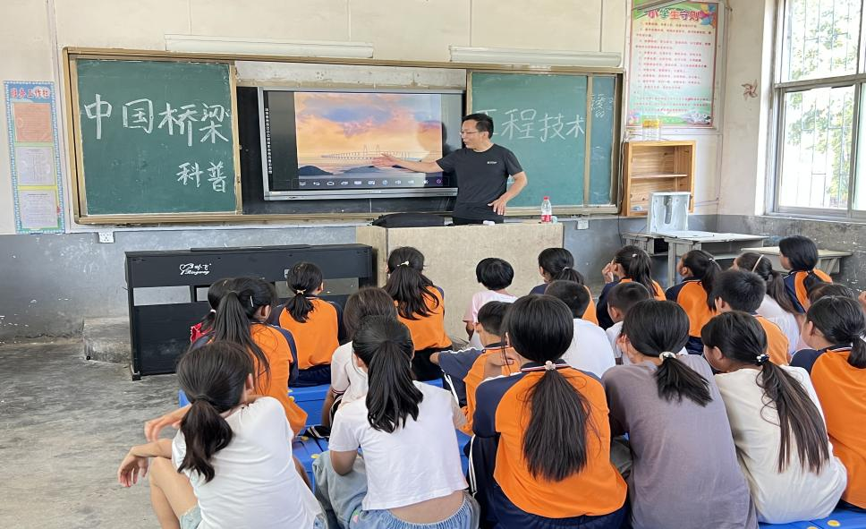 爱心支教暖童心。7名带队教师和12名大学生志愿者分工明确,发挥自身优势,通过课堂宣讲与现场实践结合的方式,为后杨小学孩子们辅导英语、数学、绘画、手工、科学、体育等课程,并将“奉献、友爱、互助、进步”的志愿服务精神,融入到课堂中去,引导孩子们树立正确的道德认知、自觉的道德养成,增知识,长本领,强体质。公路学院副院长王轩还为孩子们带来了一堂生动的桥梁知识科普课,讲解中国桥梁发展史,感受百年来在党正确领导下的巨大变革。