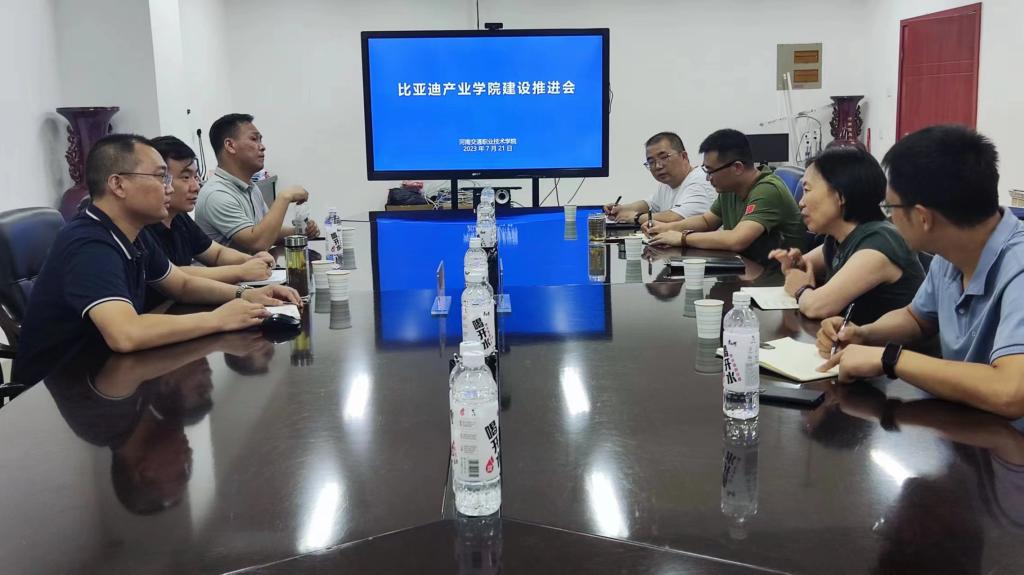 7月21日,我校在航海路校区召开比亚迪产业学院建设推进会,副校长刘芝梅、比亚迪股份有限公司校企合作经理杨双喜出席会议。比亚迪郑州基地相关负责人,教务处、招生就业处、汽车学院等部门负责人参加会议。
