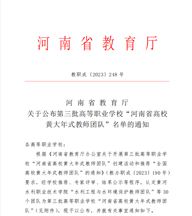 近日,河南省教育厅公布第三批高等职业学校“河南省高校黄大年式教师团队”名单,我校物流学院院长李建丽教授领衔的“智慧物流专业群教学团队”成功入选。