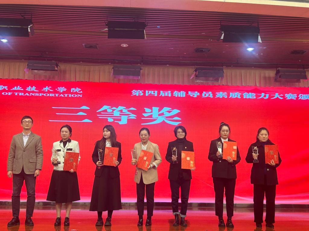 经过激烈角逐,交通信息工程系田雨、汽车学院祁燕辉2位辅导员荣获一等奖; 建筑工程系符丹丹等4位辅导员荣获二等奖; 交通信息工程系周玮等6位辅导员荣获三等奖。商务旅游系张晨斌等5位辅导员被评为“最受欢迎奖”,公路学院安利娟等8位辅导员荣获“优秀奖”。