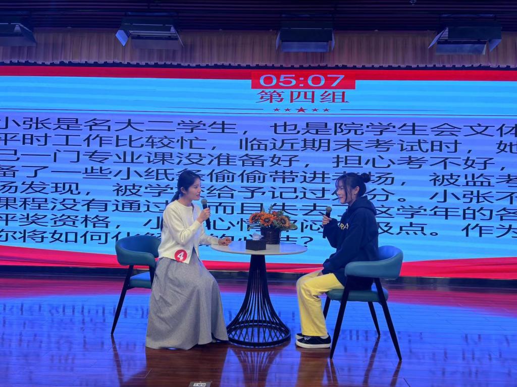 大赛分为基础知识测试、案例研讨和谈心谈话三个环节,全面考察和展示我校辅导员队伍的理论水平、职业能力和专业素养。48位辅导员参加笔试和案例研讨,12位成绩优异者晋级进入谈心谈话决赛环节。决赛上,参赛选手们紧紧围绕辅导员工作“九大职责”、深入把握学生成长成才规律、有效结合自身工作实际,针对比赛题目与助演学生展开深入细致的谈心谈话和循循善诱的教育引导,充分展现出我校辅导员扎实理论素养、过硬的素质本领和昂扬的精神风貌。