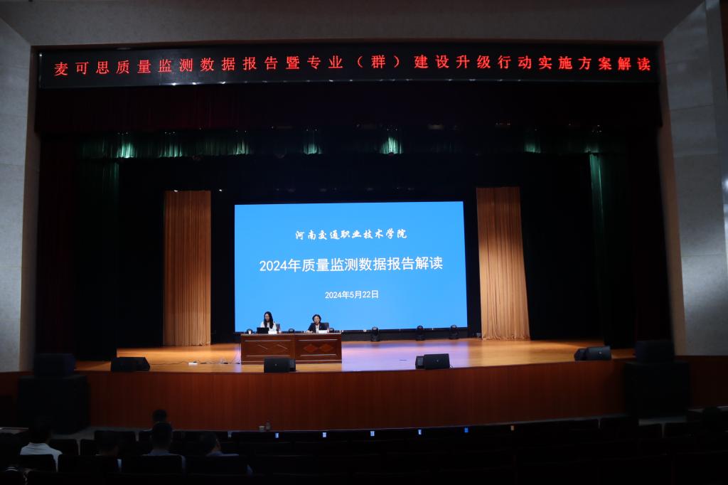 5月22日下午,学校在郑东校区文化艺术中心召开2024年麦可思质量监测数据报告解读会,副校长刘芝梅出席会议,机关相关处室、各院(系部)负责人及学校全体教师参加会议。