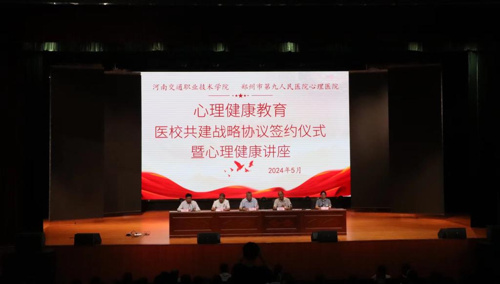5月29日,学校与郑州市第九人民医院在文化艺术中心举行心理健康教育工作校医共建战略协议签约暨揭牌仪式。郑州市第九人民医院心理医院院长常国胜、学校工会主席朱学军出席签约仪式并讲话。郑州市第九人民医院心理医院副院长李丽、我校学生工作处负责人、各院系党总支书记、组织员、学管、辅导员、朋辈心理工作队伍等400余人参加签约暨揭牌仪式。