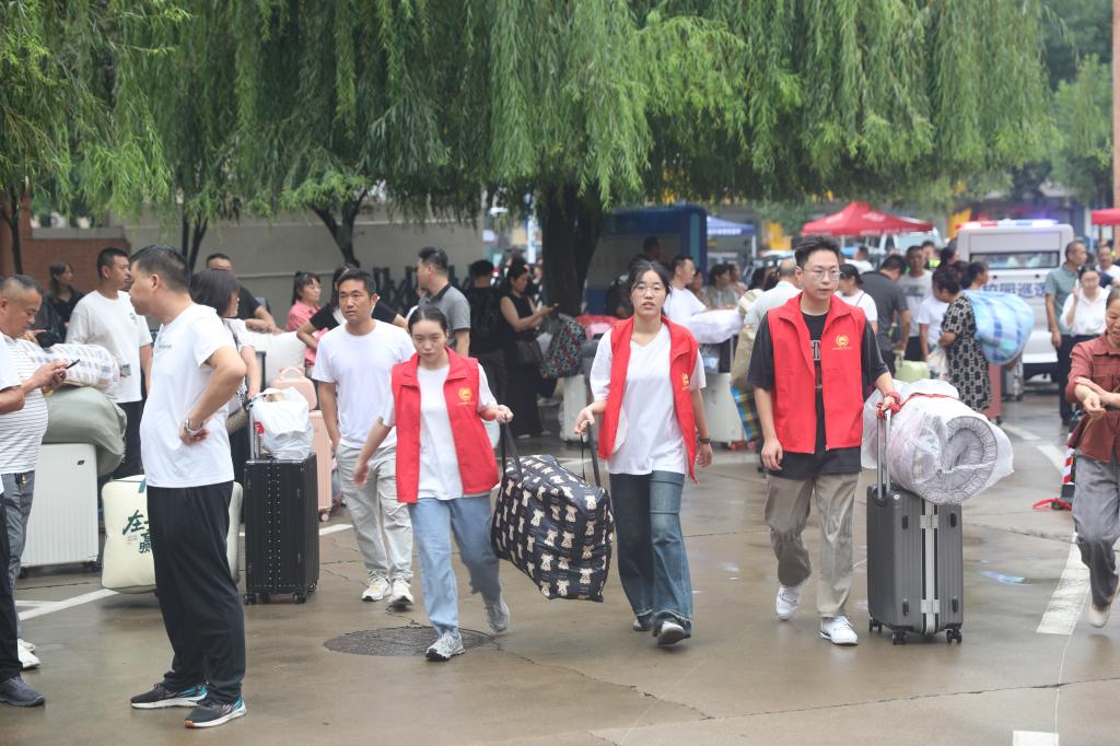 刘芝梅深入新生宿舍,详细检查了设施设备及环境卫生,并与宿舍管理人员进行了沟通,了解住宿安排及可能存在的问题,以便及时解决,确保新生住宿需求得到满足,保障他们在安全、舒适的环境中开启大学生活。朱学军则详细了解了各专业的新生报到人数、报到流程以及各类物资保障情况,并向新生和家长表示热烈欢迎,对工作人员的辛勤付出表示诚挚感谢。贴心的标识、周到的服务以及诚挚的话语,让新生和家长们深刻感受到“交院大家庭”的热情与温暖。