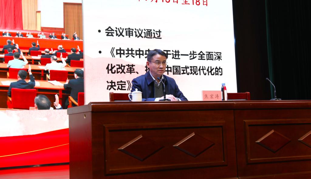 课堂上,焦宏涛围绕党的二十届三中全会召开的重要历史意义和现实意义、习近平总书记在党的二十届三中全会上的重要讲话精神、《决定》提出的进一步全面深化改革重大举措等方面,为大家阐释了党的二十届三中全会精神,尤其是对教育综合改革、科技体制改革、人才发展体制机制改革、国防和军队改革、文化体制机制改革和健全现代化基础设施建设体制机制、意识形态工作、就业方面等内容进行了深入解读。焦宏涛就科教兴国战略、人才强国战略和创新驱动发展战略的实施,全国教育大会关于全面推进教育强国建设的战略任务和重大举措,教育部深化现代职业教育体系建设改革现场推进会精神等方面全面分析了职业教育发展新方向,总结了汽车专业和军士生培养基础和发展优势,提振了精神,鼓舞了士气,并号召大家要深入学习贯彻党的二十届三中全会精神,进一步把思想和行动统一到党中央的决策部署上来,为进一步全面深化改革、推进中国式现代化挺膺担当。