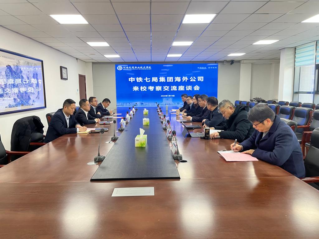 1月10日上午,中铁七局集团海外公司李松泉总经理一行4人来我校考察交流。校长焦宏涛出席座谈会。副校长李小强主持座谈会,教务处、科研外事处、招生就业处、公路学院、建筑工程系等部门负责人参加座谈。