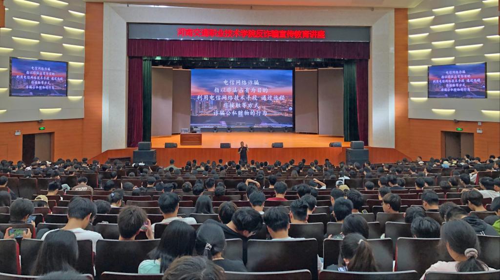 为进一步提升师生反诈意识,筑牢校园安全防线,学校于5月28日联合属地公安部门在文化艺术中心举办“反诈骗宣传教育专题讲座”。活动特邀市公安局反诈中心专家、特聘讲师及辖区派出所负责同志出席,各院系师生代表800余人参与活动。