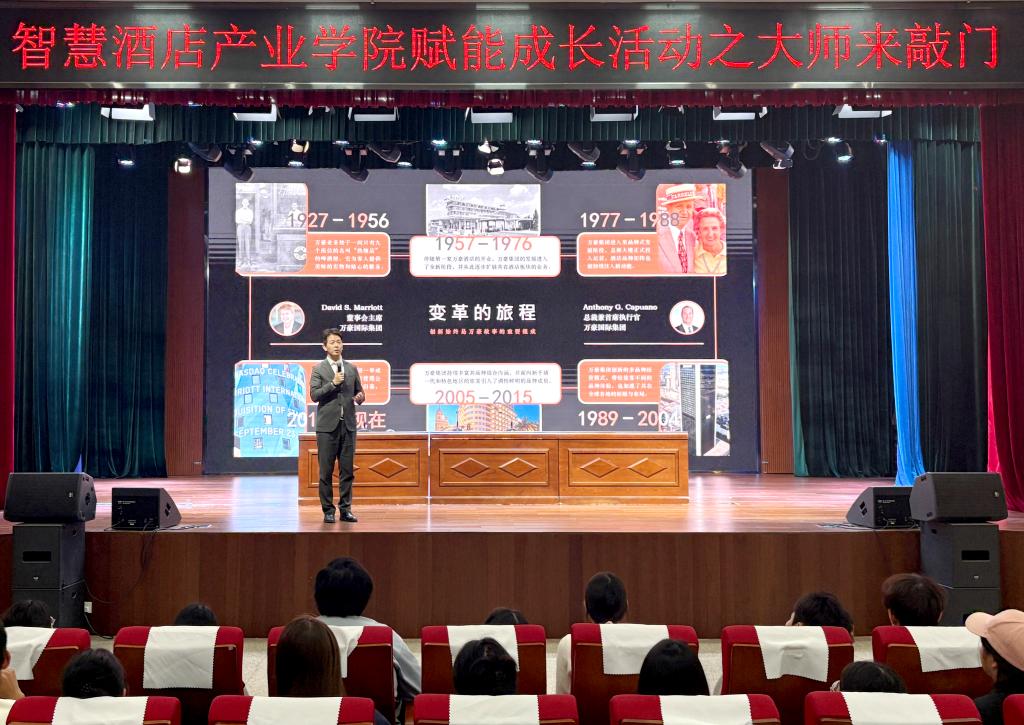 10月15日下午,智慧酒店产业学院赋能成长活动在航海路校区艺术中心举行。副校长李小强,万豪国际集团大中华区校企关系高级经理朱程、郑州建业艾美酒店人力资源总监苌清、万豪国际集团河南校企人才培养项目战略合作伙伴和国际教育学院河南代表处负责人王阳出席活动。
