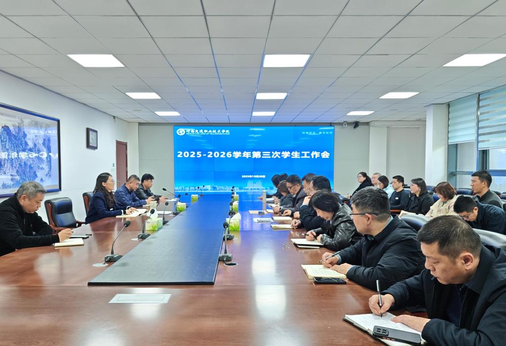 10月28日,学校在郑东校区行政楼第三会议室召开2025-2026学年第三次学生工作会。副校长王玮出席会议并讲话。各院系书记(负责人)、组织员、学管参加会议。
