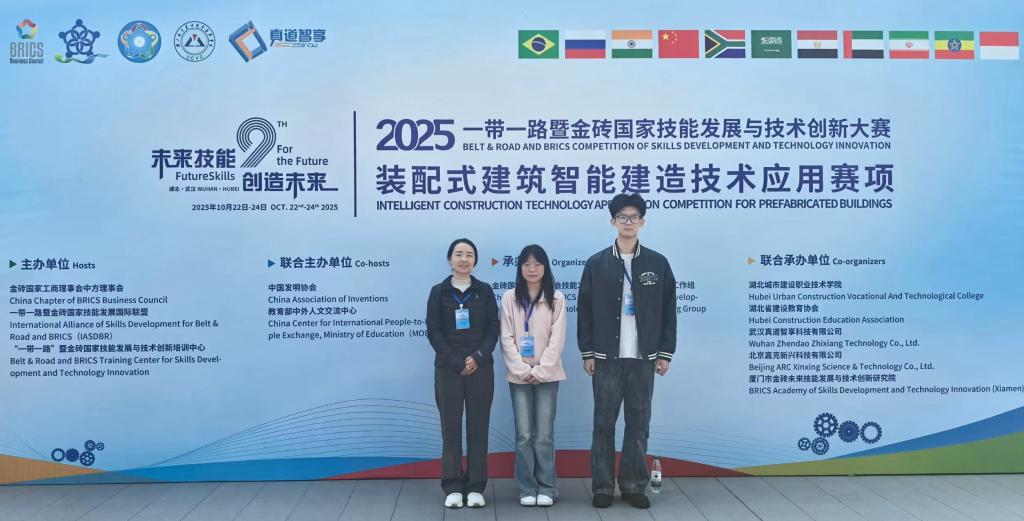 10月22日—10月24日,2025“一带一路”暨金砖国家技能发展与技术创新大赛装配式建筑智能建造技术应用赛项决赛在湖北城市建设职业技术学院举办。学校代表队与来自全国的123支参赛队伍同台竞技,建筑工程系学生包金莹、胡逸轩凭借突出表现荣获三等奖。