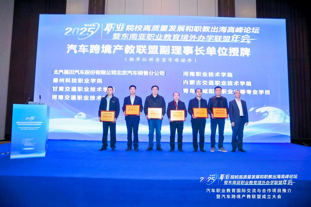 11月1日,2025职业院校高质量发展和职教出海高峰论坛暨汽车跨境产教联盟成立大会在济南召开。会议由教育部职业院校信息化教学指导委员会、全国机械职业教育教学指导委员会联合指导,山东省职业技术教育学会主办,学校凭借在汽车职业教育领域的深厚积淀与国际化办学成效,成功当选汽车跨境产教联盟副理事长单位。