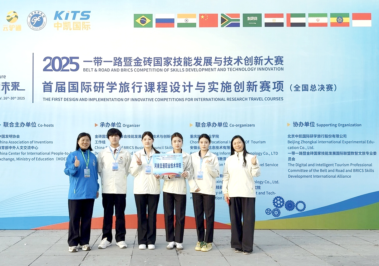 11月26日—30日,2025“一带一路”暨金砖国家技能发展与技术创新大赛之首届国际研学旅行课程设计与实施创新赛项全国总决赛在重庆旅游职业学院成功举办。学校商务旅游系学生翟子淼、葛润文、梅雅婷、马振宇荣获全国总决赛三等奖。