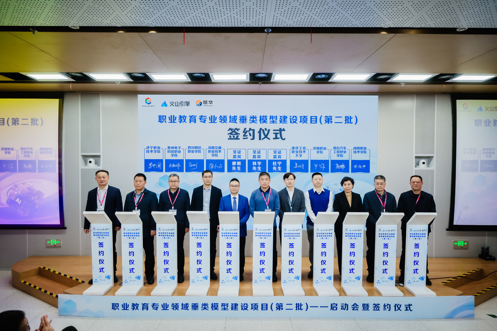 12月12日,职业教育专业领域垂类模型建设项目(第二批)签约仪式在北京举行,校长徐红玉带队参加仪式并代表学校签约,教育部职业教育发展中心主任林宇、北京火山引擎科技有限公司高级解决方案总监杜宁、项目实施专家廖明出席签约仪式并见证签约。
