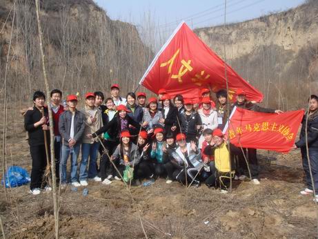按照学年活动计划安排,在植树节即将来临之际,院青年马克思主义协会决定以实际行动庆祝这个节日。2009年3月7日,院青年马克思主义协会部分成员联合人文社科系青志部全体成员前往郑州市南郊樱桃沟,进行“植一棵树绿一片天”环保活动。