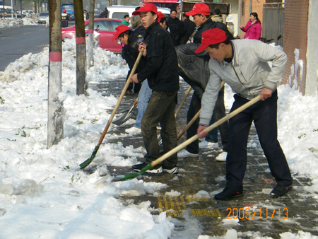 在扫雪活动中,团干和青年志愿者没有一个人因为当天的气温低、路面湿滑中途退出,反而更加热情高涨,同学们都说“一想到积雪扫除后能大大方便同学和老师的出行,心里就充满干劲。”仅仅一个多小时的时间,原本光亮一片的校园主干道,就变成了一条“绿色通道”,为师生安全出行创造最佳的交通环境。