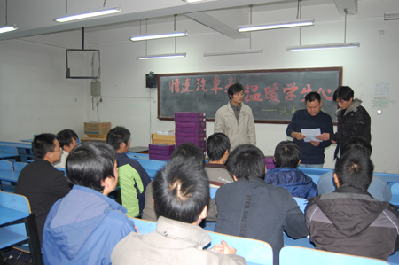 20009年12月2日,我院汽车工程系领导和各年级辅导员亲手把保暖衣送至那些未及时准备防寒衣物的同学手中。