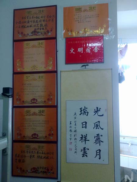 大学生书生意气,风华正茂,激扬文字,畅想未来,他们在星级宿舍创建中给自己确立一个座右铭,如“永不言败”、“自信与我行”、“我的未来不是梦”等。同学们在设计宿舍主题和自己座右铭的过程中,激发了大家对人生、学习和生活的遐想与思考。