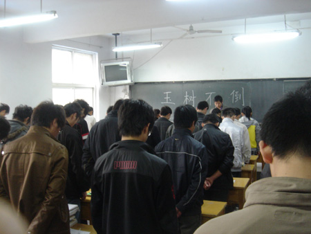 4月21日,是青海玉树发生地震的第七天,为深切哀悼地震中遇难的同胞,全国举行哀悼活动。上午10点,交通信息工程系辅导员王心心组织班委在班级召开主题班会,详细向学生介绍了玉树地震的情况、灾区人们如何坚强自救以及如何逃生等情况。全体起立默哀三分钟,表达对青海玉树地震遇难同胞的深切哀悼,为青海玉树地震灾区群众默默送去祝福。