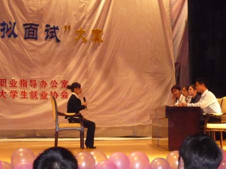 为培养学生的求职能力,养成良好的职业意识,做好就业准备。5月7日晚,由职业指导办公室主办,大学生就业协会承办的第四届“求职模拟面试大赛”总决赛在艺术中心举行。
