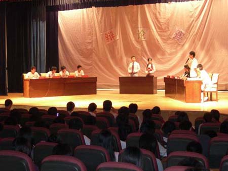 比赛赛场气氛紧张激烈,双方辩手针锋相对,唇枪舌剑却又不失风度,旁征博引,各抒己见,不时引来同学们阵阵掌声。经过两个小时的紧张角逐,评出了一、二、三等奖和优秀辩手并颁发证书。