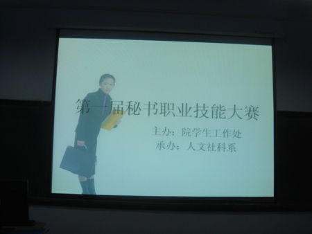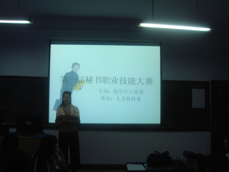 5月25日晚,由院学生处主办,人文社科系承办的我院首届秘书职业技能大赛决赛于人文系多媒体教室落下帷幕。人文社科系主任刘之梅莅临并全程观看了比赛,中文和文秘教研室鹿燕、高华、陈巍、李菡、孙艳娜等五名老师担任大赛评委。