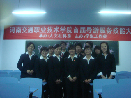 由院学工处主办,人文社科系承办的2010年导游服务技能大赛于5月24日下午和5月25日晚分别在人文社科系多媒体教室举行了初赛和决赛。本次导游服务技能大赛由专业导游老师徐硕、李琼、黄秋霞和王艺军老师作为评委,共有41名学生参加了初赛,11名初赛胜出者参加了决赛。