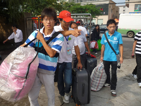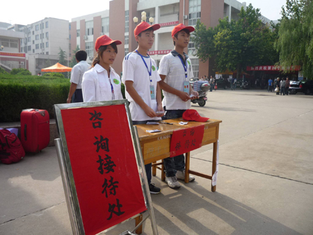 迎新当日,院团委各部门学生干部通力合作,设立了咨询处、引导处、综合服务处,佩戴着醒目的“迎新使者”标志,引导新生注册登记,帮助新生及家长搬运行李,及时解决报到过程中所遇到的困难。校园中,到处可以听到“这里是新生及家长休息处,累了,来歇歇吧!”、“这里是团员服务岗,有什么疑问欢迎来咨询我们!”的声音,团学干部们精心制作的迎新展板也使整个校园充满了温馨的氛围。