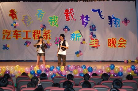 9月28日晚7点30,汽车工程系在艺术中心隆重主办了“青春有我,载梦飞翔”2010级迎新晚会。汽车工程系书记朱学军、主任宋保林、学管胡训华和各班辅导员观看了晚会。