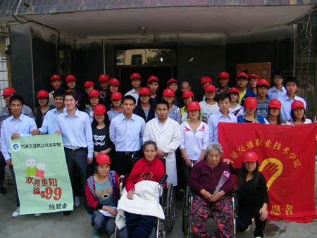 为弘扬中华民族的传统美德、深入开展青年志愿服务活动,九九重阳节来临之际,院团委组织我院团学干部和部分青年志愿者到“恒爱”敬老院开展敬老活动。