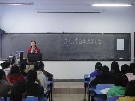 为进一步维护校园安全稳定、建设和谐校园,10月19日下午人文社科系书记刘之梅于16:30-17:30、18:00-19:00、19:30-20:30三个时间段在北校区五楼多媒体教室对全系学生进行了“成长、责任和大学生活”专题报告。