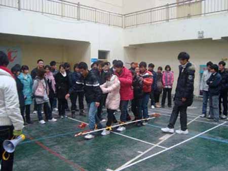 12月15日中午,道桥工程系在体育中心举办了以“兴趣极限挑战”为主题的比赛,内容包括的“晕头转向”和“齐心协力”两大内容。