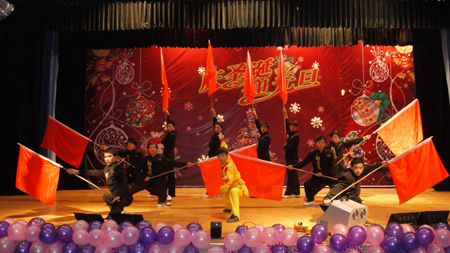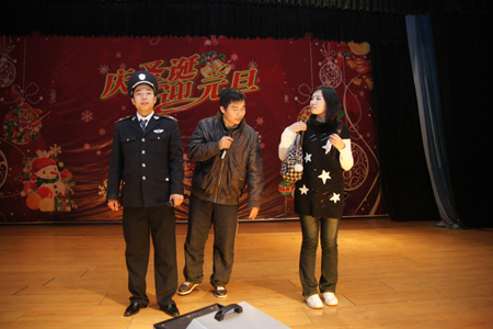 晚会在轻松愉快的乐曲中拉开帷幕。首先出场的是胡克峰老师大气磅礴、刚柔并劲的武术表演《挥舞天地》;接着是滑稽幽默的相声《两个弄潮儿》;小品《街头卫士》带给了大家阵阵欢笑;舞蹈《碧波孔雀》、《唐古拉风》仿佛把观众来到了风光旖旎的傣家山寨和一望无际的大草原;电影协会的电影原声配音片段《隋朝来客》惟妙惟肖;热辣激情的街舞充满着动感与活力;女声合唱《最想念的季节》旋律优美动听;特别是王蕾和刘思老师分别演唱的《万岁中国》和《等待》更是将晚会现场气氛推向高潮。晚会内容丰富、气氛热烈,始终洋溢着欢乐祥和的节日气氛,展现了交院师生团结奋进的精神风貌和对新年的美好祝愿。
