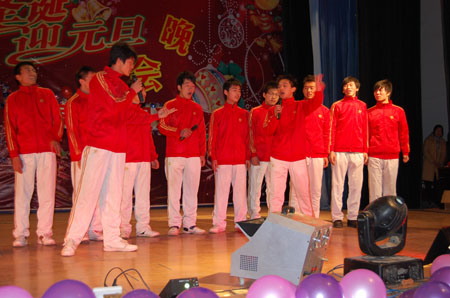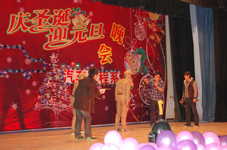 欢声的锣鼓敲起来,年味也越来越浓。在欢快又有节奏的舞蹈《开门红》的激情、动情的乐声中,晚会正式拉开了帷幕。同学们都还沉浸在刚才的欢快之中,乔坤同学的一首感情深厚的《不再犹豫》把同学们的思绪拉了回来,同时也把晚会带到了高潮。接下了同学们又欣赏了相声、小品等精彩节目。付歆娟老师优美而又动听的歌伴舞《好运来》、河南版小品《不是闹着玩的》等节目使晚会经历了一个又一个的高潮。