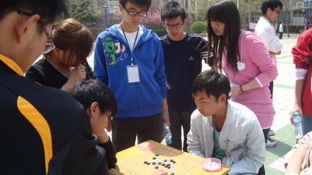 4月15日中午,由道桥工程系心理协会举办的“五子连心”棋艺比赛在文化广场拉开序幕。系学生会各部门的通力合作使得本次大赛秩序井然,有条不紊。
