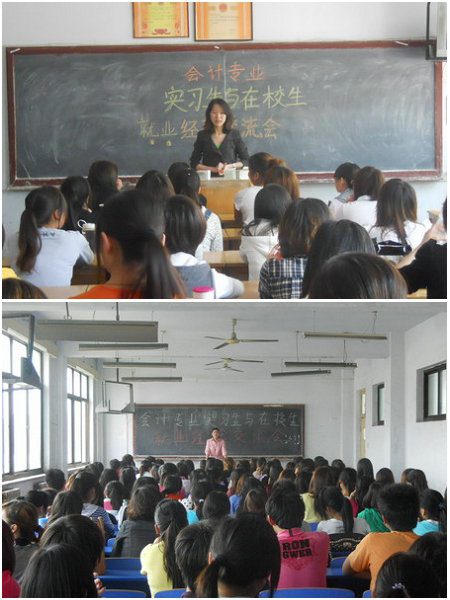 为了帮助在校生更好的了解专业知识应用,增强在校生的职场意识,5月4日下午,09级会计专业各班级分别举行了实习生与在校生就业经验交流会。2008级会计专业现从事会计行业的2名同学以及参加专升本的2名同学参加了交流会。