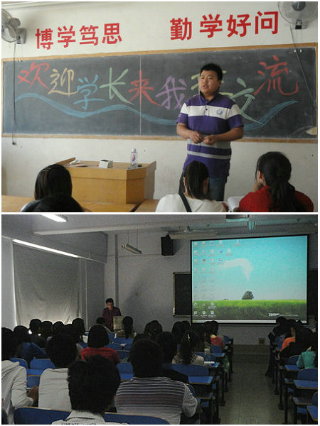 在现场互动环节中,09级的同学们表现积极,结合自己的实际提出了很多问题,并从学长那里得到了满意的答案;对09级同学现在对于专升本和就业的迷茫,学长们建议学弟学妹做两手准备,但选择了就要坚定目标,走好自己的路。最后,08级同学祝福学弟学妹梦想成真。