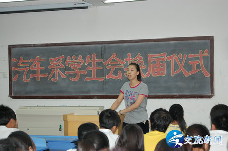 为了更好地开展学生工作、为我系学生会注入新鲜的血液,5月31日12:30汽车工程系学生会换届仪式在1号教学楼307教室召开。汽车工程系学管杨光老师以及学生会主要干部和全体学生会成员参加了此次换届仪式。