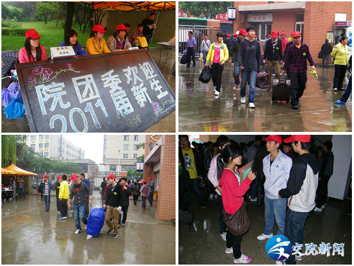 9月13日是我院2011级新生入学的日子,秋雨绵绵爱心暖暖,团委45位团干组成志愿服务团队,开展迎接新生志愿服务工作,工作内容主要包括校门接待、交通引领、报到流程引导,秩序维持、行李搬运等。