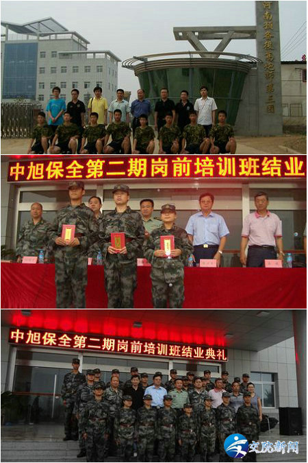 秋风送爽,伴着阵阵绵绵细雨,交通信息工程系领导和教师一行四人,来到位于河南洛阳某预备役部队,慰问在那里参加中旭保全岗前培训的学生,并于次日和公司有关领导一同参加了学生们的岗前培训班结业典礼。