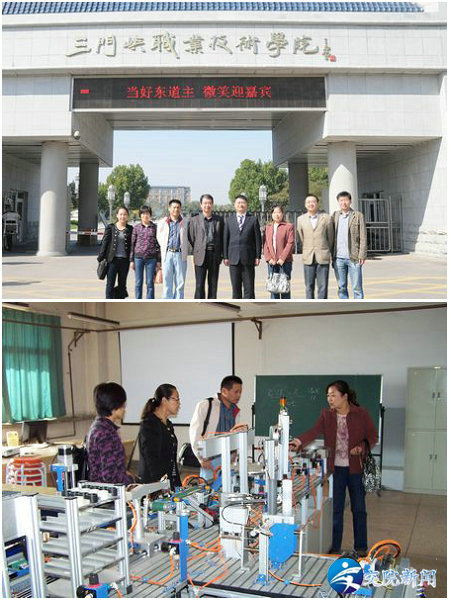 考察团一行逐一参观了三门峡职业技术学院的校内实训基地建设情况,并学习了她们在实训基地建设、项目化教学、工学结合、半工半读、顶岗实习和电子大赛等方面的优秀方法和经验。