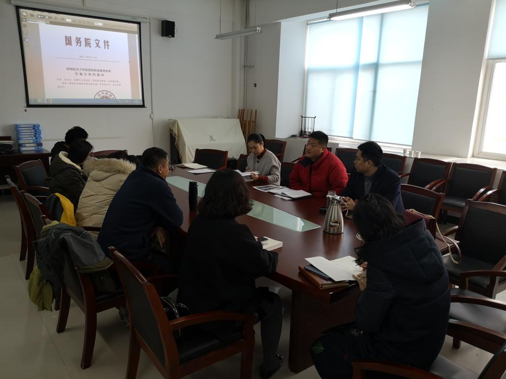 最后,张焕带领全体教师学习了《国家职业教育改革实施方案》,并强调各位教师应结合学科进行思考,探寻更利于学生发展的教学方式。