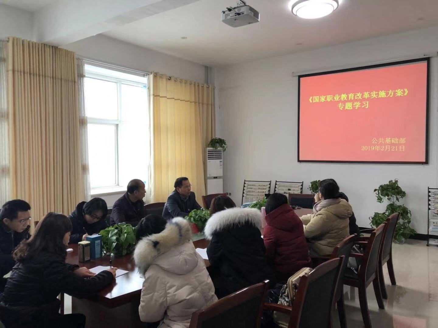 2月21日,公共基础教学部在新校区召开新学期全体教职工会议,传达学习《国家职业教育改革实施方案》,部署新学期重点工作。会议由部主任孙红伟主持。